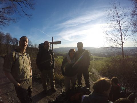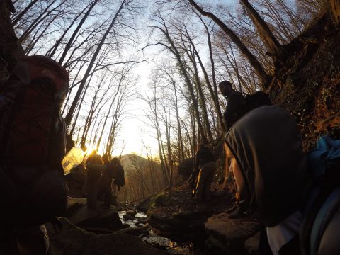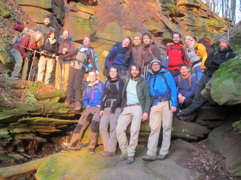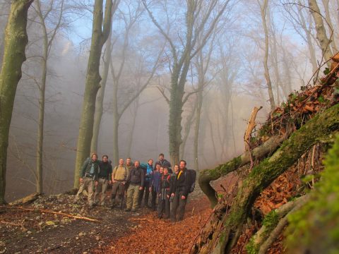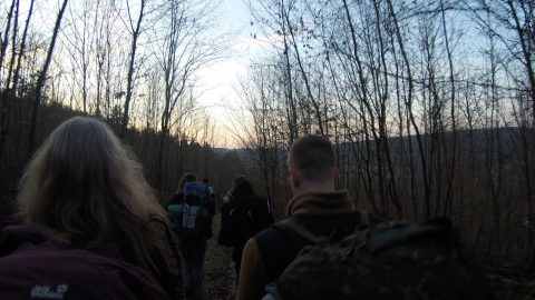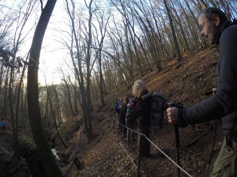 Am 3. Tag ging es, für die mittlerweile 16 Wanderer, weiter nach Neckargerach. Nach vielen Höhenmeter ging es Endlich bergab durch die Magaretenschlucht. Ein Gruppenfoto bei Sonnenuntergang durfte hier natürlich nicht fehlen.