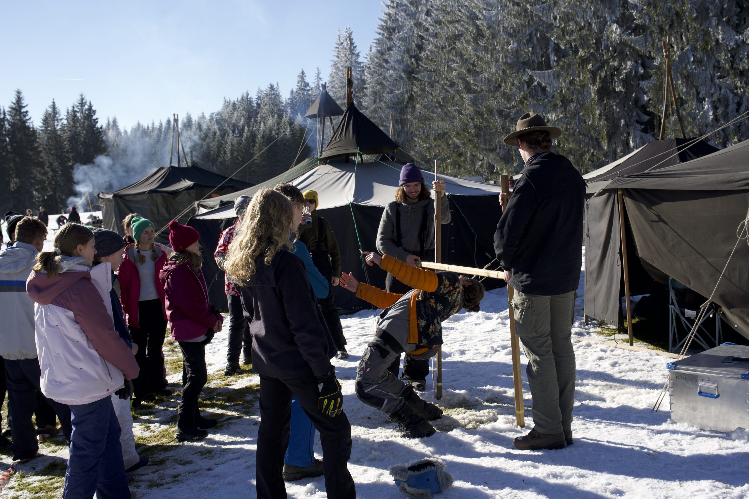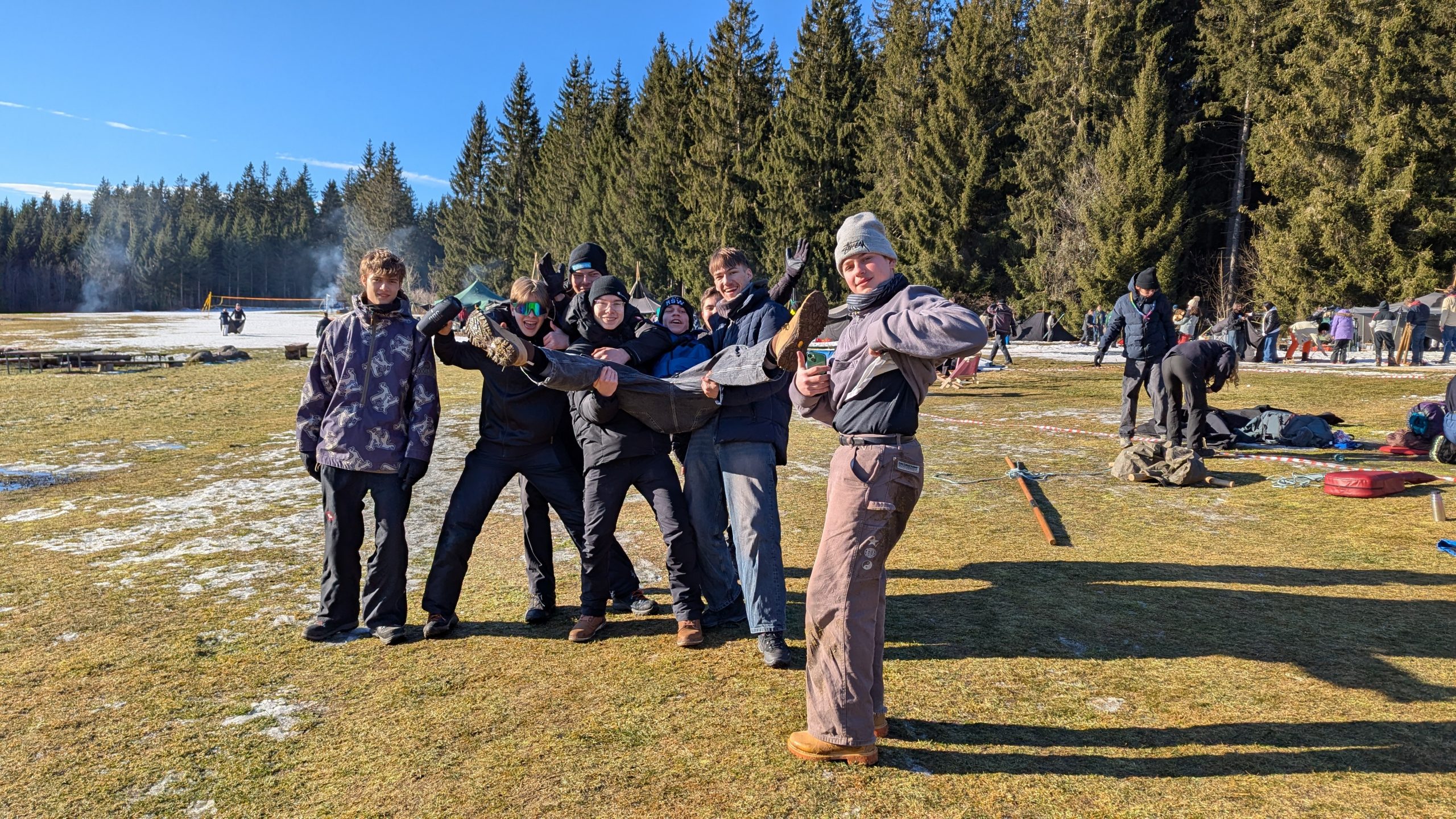 Dieses Jahr ging es wieder mit der Pfadi Stufe zum Winterlager Track for Kidz unter dem Motto Beach Party. Auf einem neuen Zeltplatz gab es endlich wieder etwas Schnee.